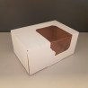 Pudełko ornament na torty i ciasta pozwala opakować wypieki w sposób estetyczny, a dzięki okienku konsument ma możliwość ujrzeć zawartość bez otwierania go. Dostępne są również w kolorze białym bez okienka lub biało-brązowym z kolorową ilustracją.