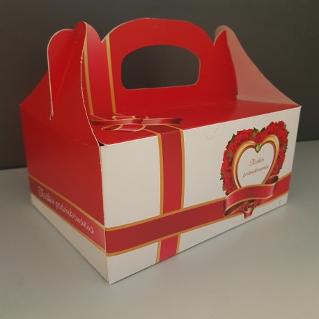 Pudełko ornament na torty i ciasta pozwala opakować wypieki w sposób estetyczny, a dzięki okienku konsument ma możliwość ujrzeć zawartość bez otwierania go. Dostępne są również w kolorze białym bez okienka oraz biało-brązowym z kolorową ilustracją i okienkiem.