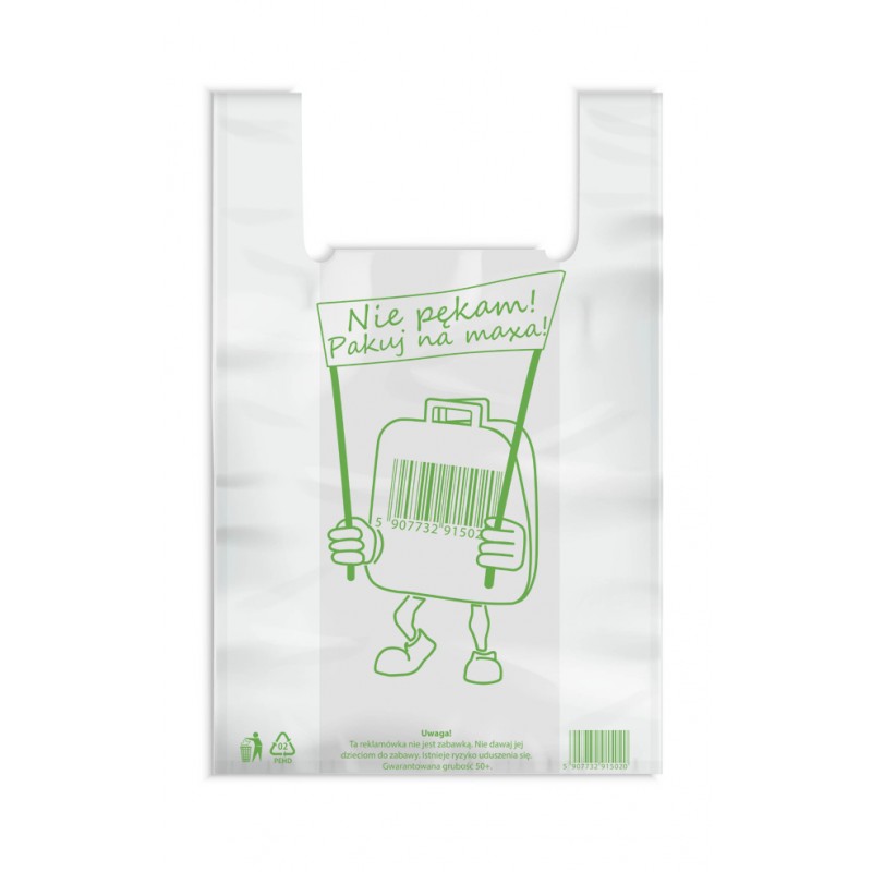 Reklamówki wielokrotnego użytku o grubości powyżej 50 mikronów nie podlegają opłacie recyklingowej, dlatego można ją dawać lub sprzedawać klientowi. Posiadają atest do kontaktu z żywnością oraz służą do pakowania towarów spożywczych oraz przemysłowych. Cechują się bardzo dużą wytrzymałością. Dodatkowo posiadają kod kreskowy.