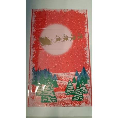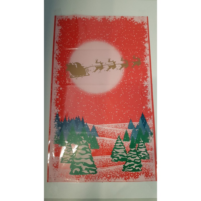 Woreczki z ozdobnym świątecznym nadrukiem wykonane są z folii polipropylenowej PP. Idealne do zapakowania mikołajkowych lub gwiazdkowych prezentów. Tył woreczka jest w kolorze, matowy. Przednia część z nadrukiem jest przeźroczysta. Cena dotyczy 50 szt.