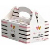 Pudełka samoskładające na ciasto są elegancką formą podziękowań dla gości różnego typu imprez okolicznościowych. Występują w różnych wzorach oraz kolorach. Do każdego pudełka dodawana jest podkładka wzmacniająca i usztywniająca dno.
