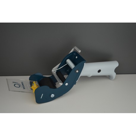 Ręczna zaklejarka do taśm pakowych. Wykonana z metalu z otwieraną obudową do nakładania taśm do szerokości 50 mm. Z przodu posiada ostre ząbki do odcięcia taśmy.